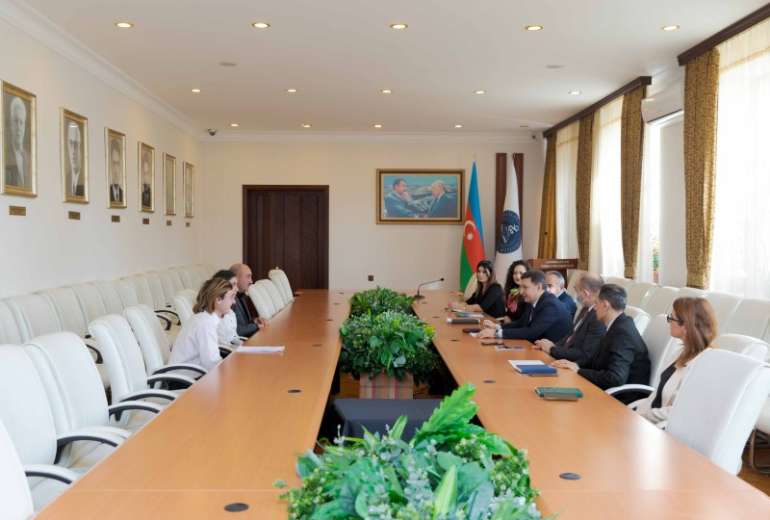 Azərbaycan Tibb Universitetinin (ATU) rektoru, professor Gəray Gəraybəyli ATU-da praktikada olan qazaxıstanlı magistrantlarla görüşüb. Marat Ospanov adına Qərbi Qazaxıstan Tibb Universitetinin 8 magistrantı ilə görüşdə rektor G.Gəraybəyli universitetlər arasında mövcud dostluq və əməkdaşlıq əlaqələrinin səviyyəsini yüksək qiymətləndirdiyini bildirib. O, digər ölkələrin universitetləri ilə icra olunan ortaq təşəbbüs və layihələr, ATU-nun əcnəbi tələbələrə verdiyi imkanlar haqqında da qonaqları bilgiləndirib. Magistrantlar yaradılan şərait üçün ATU rəhbərliyinə təşəkkür edərək buradakı təcrübə ilə bağlı təəssüratlarının açıqlayıblar. Qonaqlar ATU-da praktikada olduqları 14 gün ərzində Patoloji anatomiya, Sitalogiya, Embriologiya, Histologiya, Epidemiologiya, Qidalanma, Uşaq xəstəlikləri, Ailə təbabəti, Əczaçılıq və digər kafedralarda olduqlarını, universitetin klinikalarında işlədiklərini bildiriblər. Görüşdə ATU-nun Beynəlxalq Əlaqələr üzrə prorektoru, dosent Orxan İsayev, İctimai Səhiyyə fakültəsinin dekanı, dosent Qalina Qəniyeva, Beynəlxalq əlaqələr şöbəsinin müdiri, dosent Müşfiq Orucov, İctimaiyyətlə Əlaqələr şöbəsinin müdiri Günel Aslanova, Beynəlxalq əlaqələr şöbəsinin koordinatorları iştiak ediblər. Qeyd edək ki, Marat Ospanov adına Qərbi Qazaxıstan Tibb Universitetinin 8 magistrantı – Nurbek Azbergenov, Zarina Jaksıbay, Elmira Xayrullina, Dayana Almurzayeva, Dinara Bekbolatqızı, Gulmariya Sadenova, Jansaya Kereyeva, Ayna Akbasova ATU-da iki həftə ərzində təcrübə proqramında iştirak ediblər.
