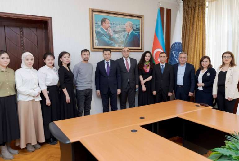 Azərbaycan Tibb Universitetinin (ATU) rektoru, professor Gəray Gəraybəyli ATU-da praktikada olan qazaxıstanlı magistrantlarla görüşüb. Marat Ospanov adına Qərbi Qazaxıstan Tibb Universitetinin 8 magistrantı ilə görüşdə rektor G.Gəraybəyli universitetlər arasında mövcud dostluq və əməkdaşlıq əlaqələrinin səviyyəsini yüksək qiymətləndirdiyini bildirib. O, digər ölkələrin universitetləri ilə icra olunan ortaq təşəbbüs və layihələr, ATU-nun əcnəbi tələbələrə verdiyi imkanlar haqqında da qonaqları bilgiləndirib. Magistrantlar yaradılan şərait üçün ATU rəhbərliyinə təşəkkür edərək buradakı təcrübə ilə bağlı təəssüratlarının açıqlayıblar. Qonaqlar ATU-da praktikada olduqları 14 gün ərzində Patoloji anatomiya, Sitalogiya, Embriologiya, Histologiya, Epidemiologiya, Qidalanma, Uşaq xəstəlikləri, Ailə təbabəti, Əczaçılıq və digər kafedralarda olduqlarını, universitetin klinikalarında işlədiklərini bildiriblər. Görüşdə ATU-nun Beynəlxalq Əlaqələr üzrə prorektoru, dosent Orxan İsayev, İctimai Səhiyyə fakültəsinin dekanı, dosent Qalina Qəniyeva, Beynəlxalq əlaqələr şöbəsinin müdiri, dosent Müşfiq Orucov, İctimaiyyətlə Əlaqələr şöbəsinin müdiri Günel Aslanova, Beynəlxalq əlaqələr şöbəsinin koordinatorları iştiak ediblər. Qeyd edək ki, Marat Ospanov adına Qərbi Qazaxıstan Tibb Universitetinin 8 magistrantı – Nurbek Azbergenov, Zarina Jaksıbay, Elmira Xayrullina, Dayana Almurzayeva, Dinara Bekbolatqızı, Gulmariya Sadenova, Jansaya Kereyeva, Ayna Akbasova ATU-da iki həftə ərzində təcrübə proqramında iştirak ediblər.